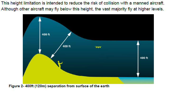 Thanks Jason. Yes I was aware of the 400ft restriction, I was just wondering if there was a physical restriction, like the drone suddenly dropping to 120m once it had gone over the cliff for example.