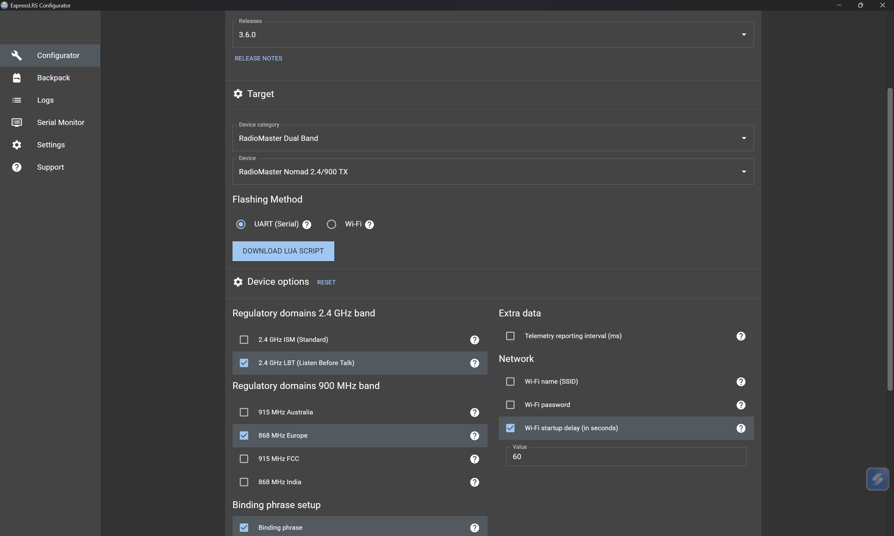 In the configurator, select the correct radio and the 868/900MHz selections should appear at the bottom. At least it does for my nomad and XR4.