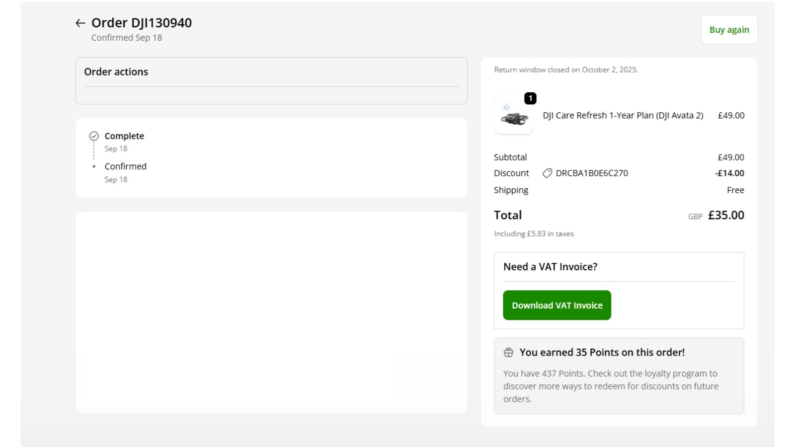 DJI Care Refresh 1-Year Plan (DJI Avata 2)
