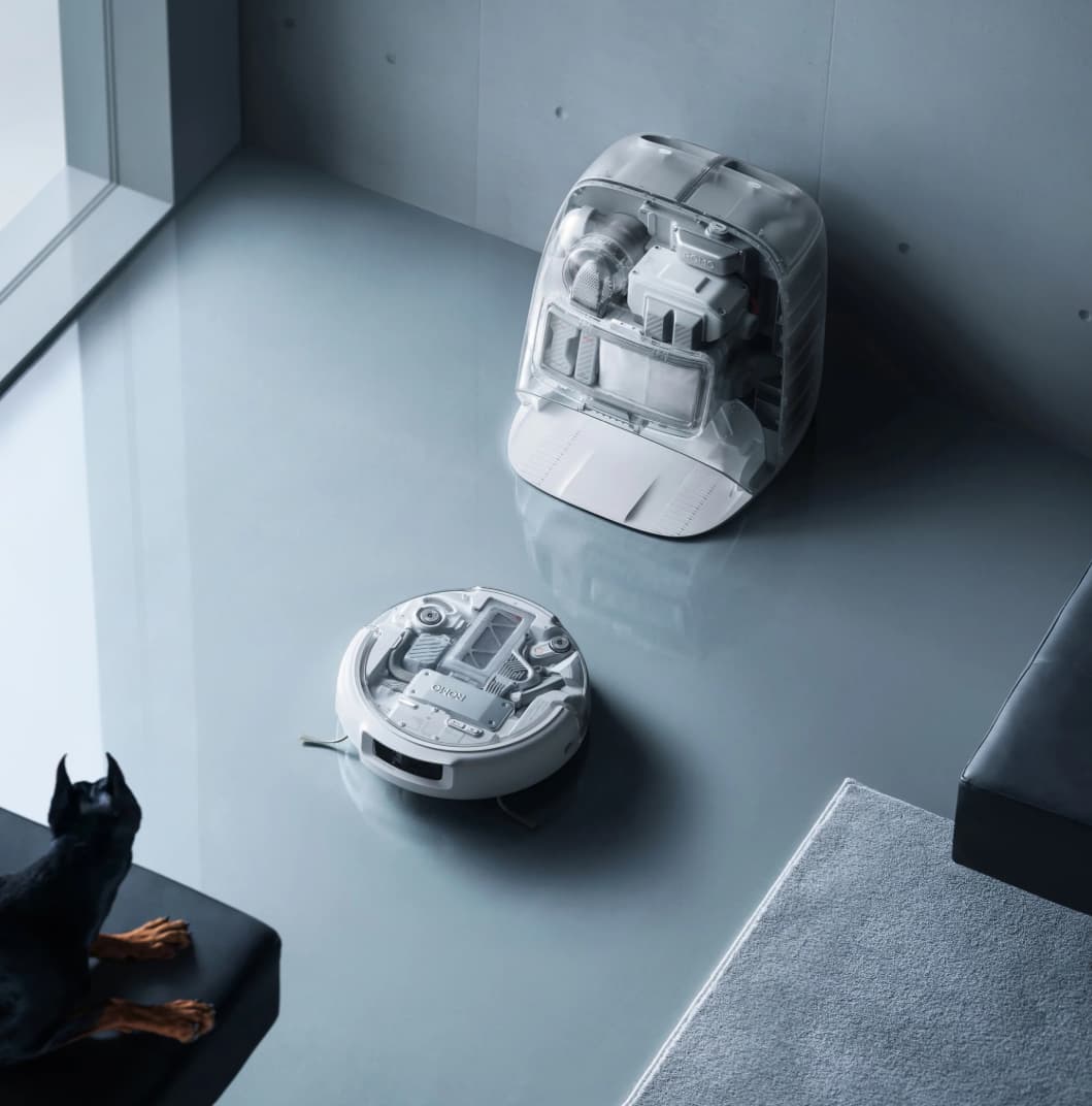 DJI has released a very funky home robotic vacuum. Clear so that you can see all the gubbins inside which I love.