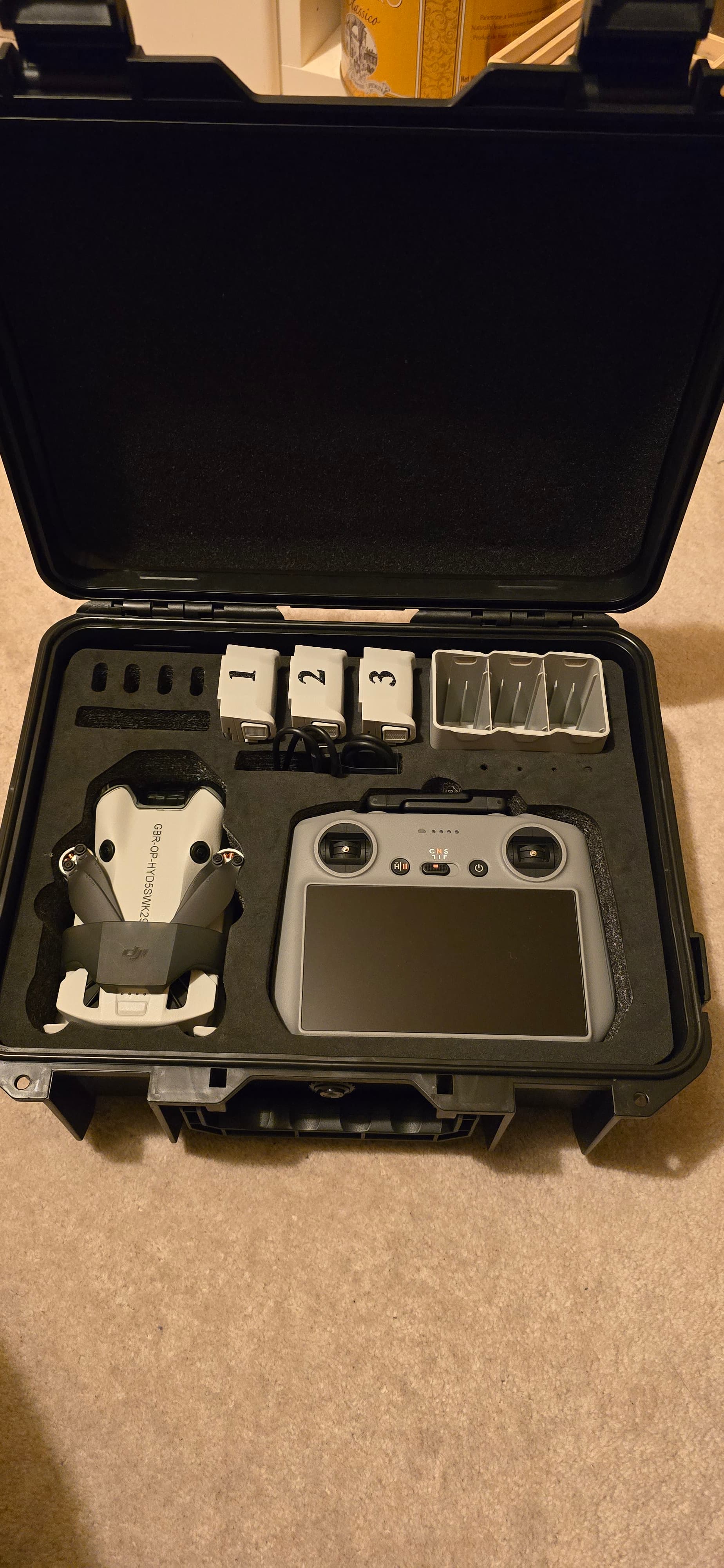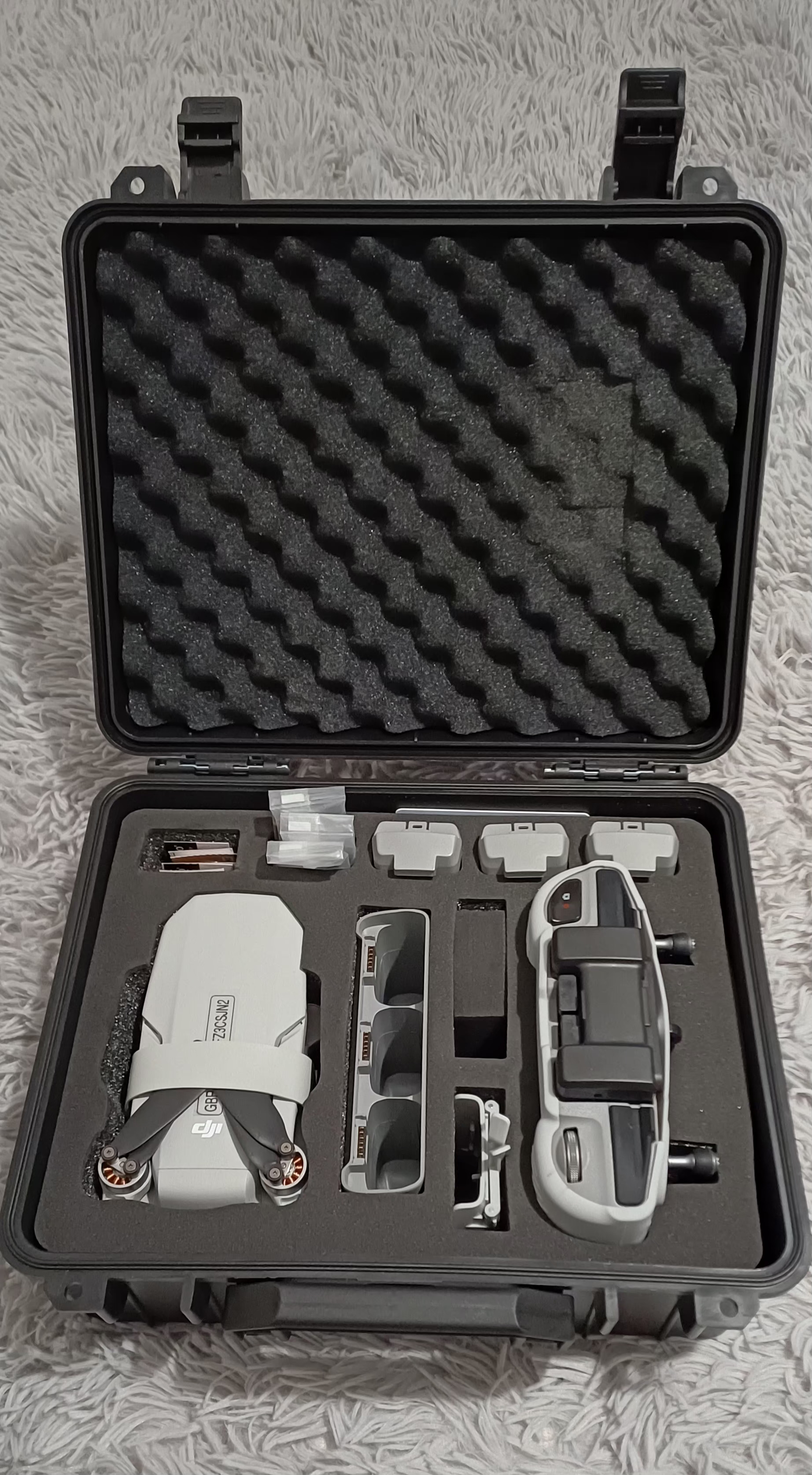 Really nice drone case! Love the numbers on the batteries makes it easy to see which one’s been used and keeps track of charging cycles. Clever little system! I see you have screen protector on your RC2 controller very good idea. ![]()