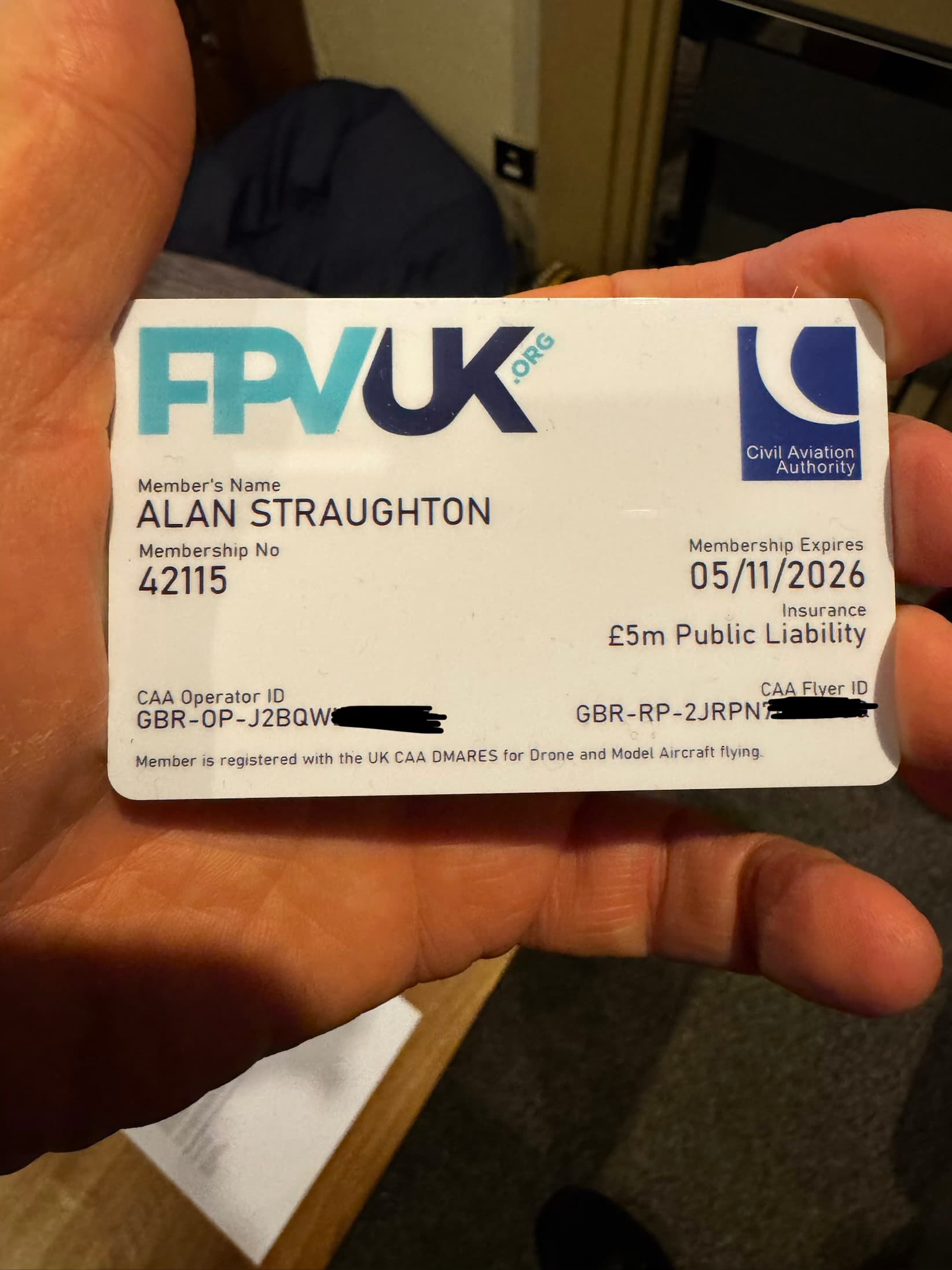 Flier ID card arrived, now I feel part of a great community, stickers applied to my drone, now I just need the weather, thanks everyone.