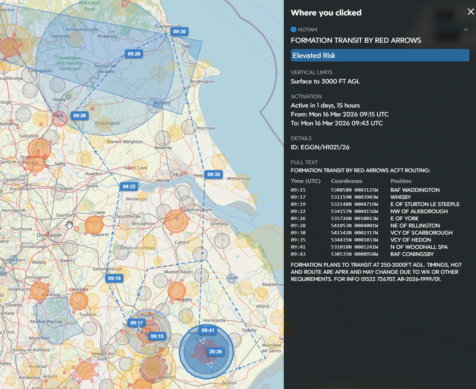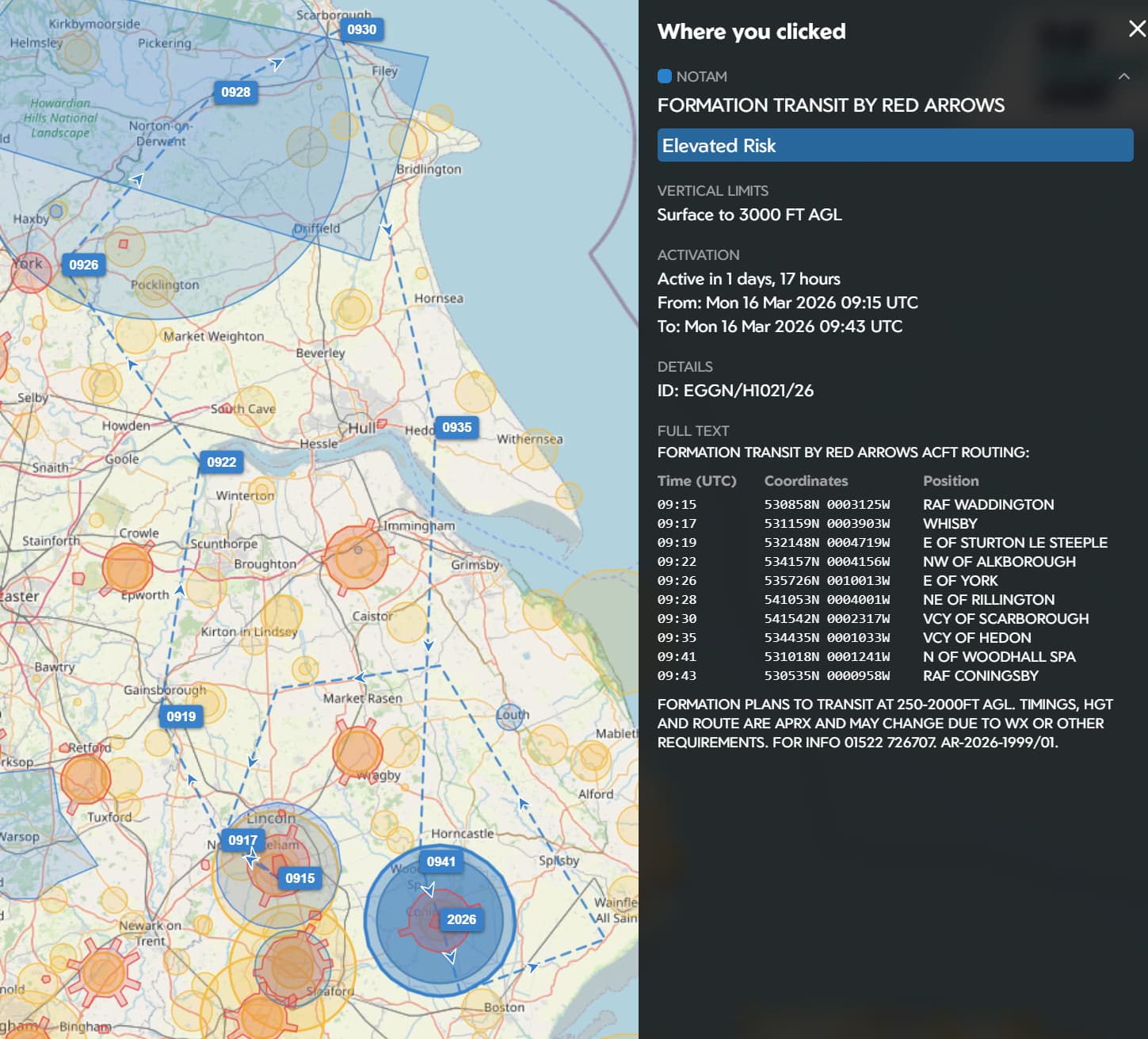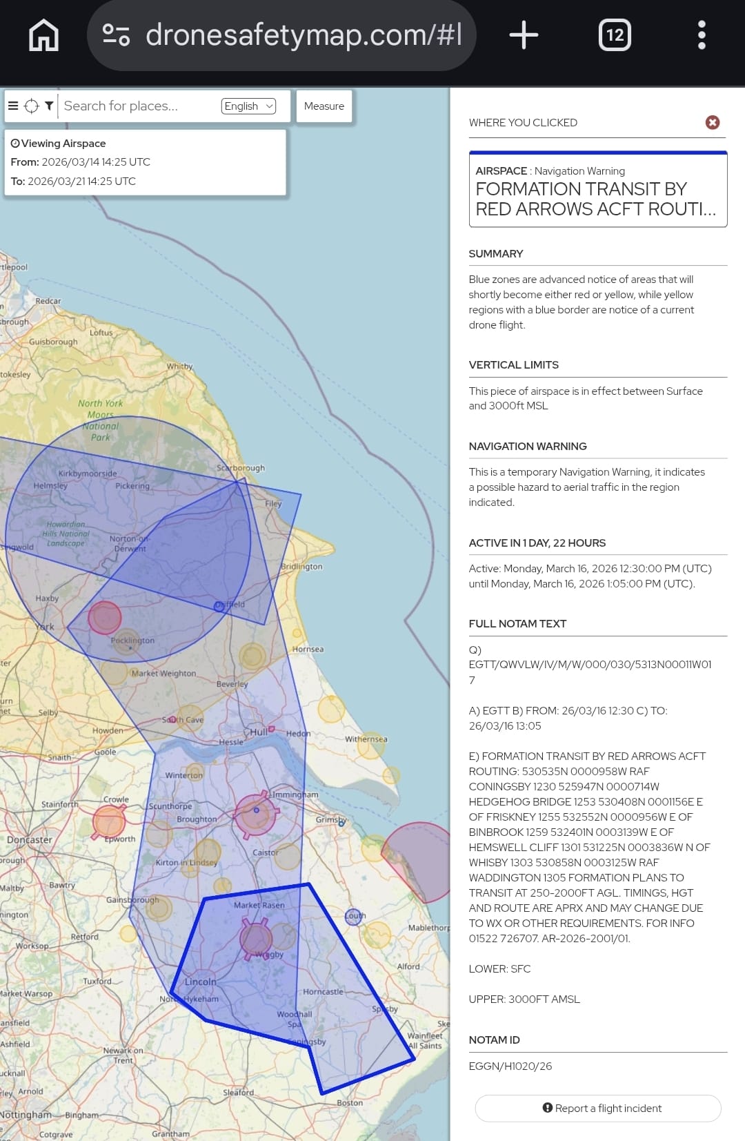 This is how we show a Red Arrows formation NOTAM on thedronemap.com