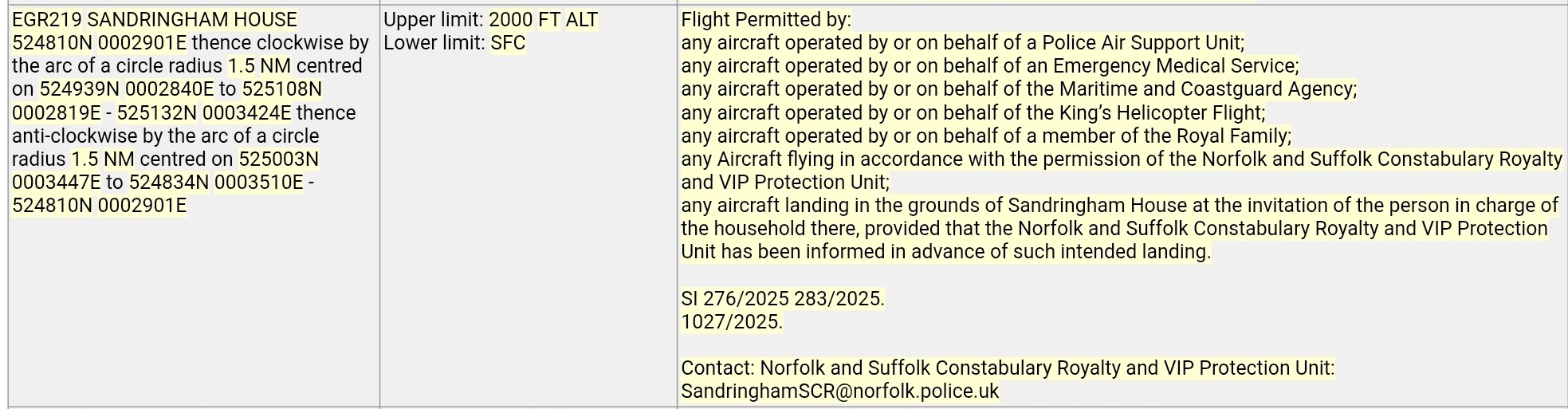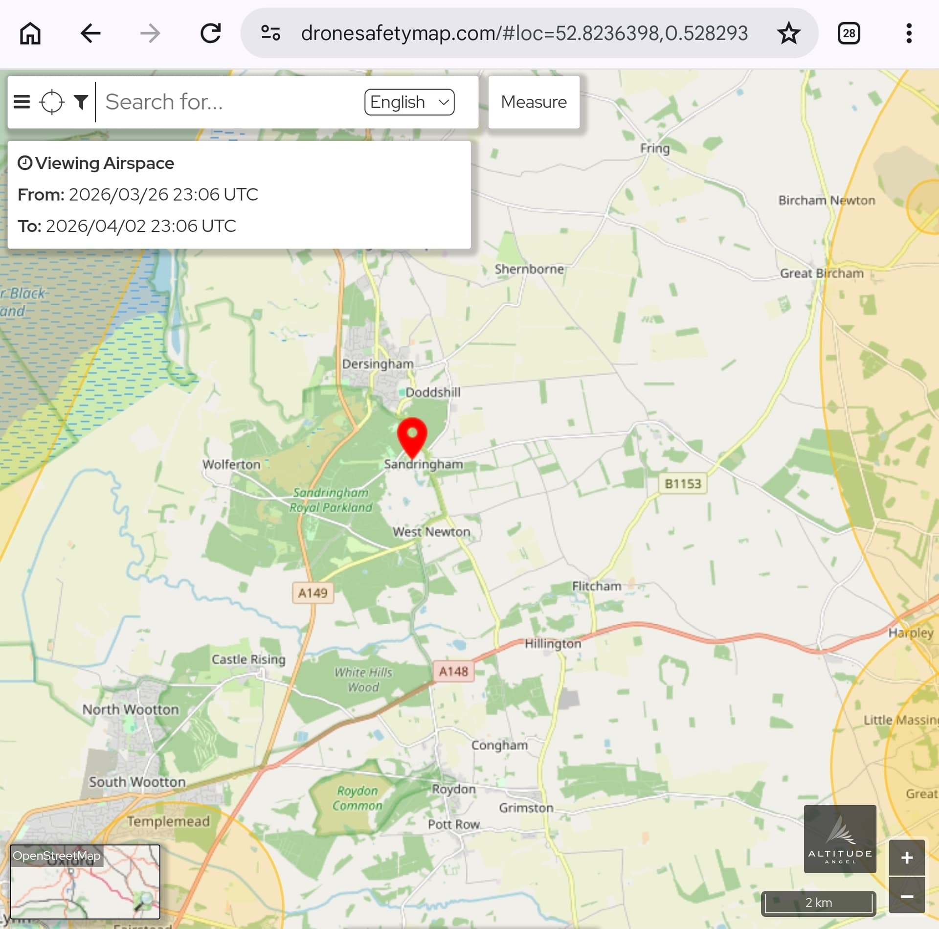 Remarkably, the flight restriction at the Sandringham Estate has disappeared from Altitude Angel / Drone Assist / DroneSafetyMap.